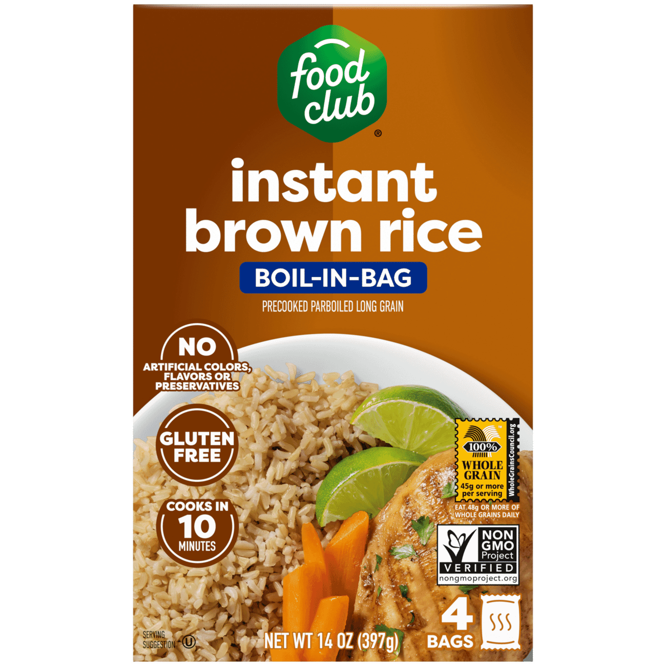 Food Club Boil-in-Bag Instant Brown Rice 4 Bags