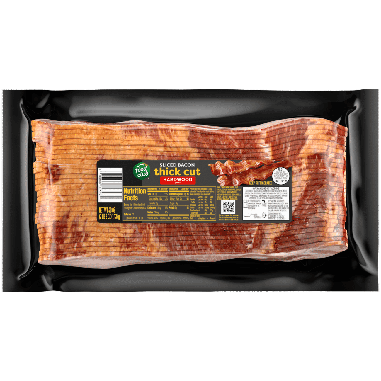Food Club Thick Cut Hardwood Smoked Sliced Bacon 40 oz