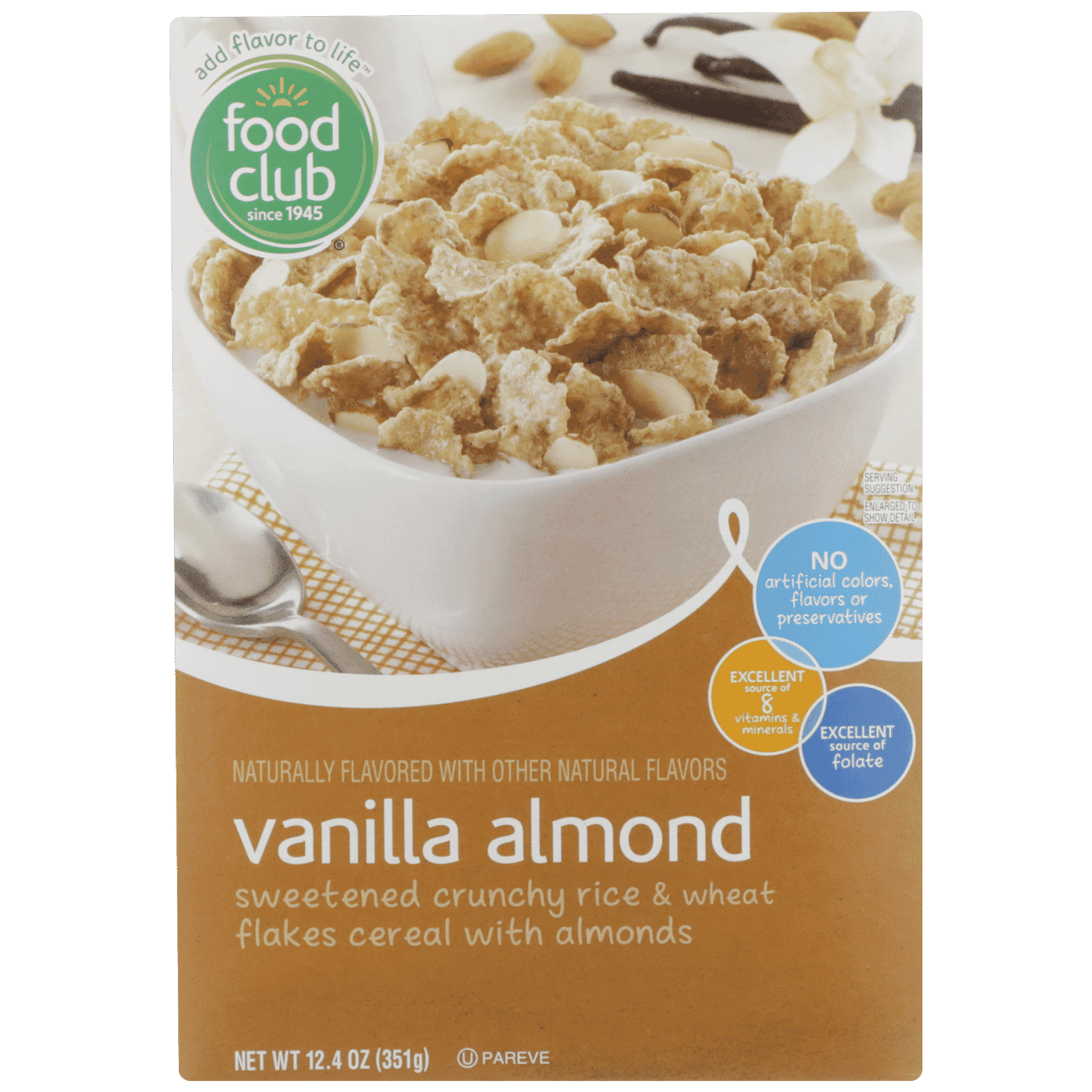 Vanilla Almond Sweetened Crunchy Rice & Wheat Flakes Cereal With Almonds
